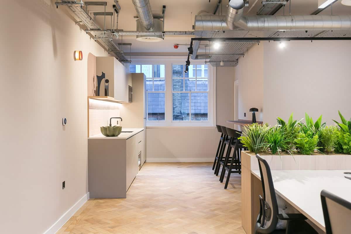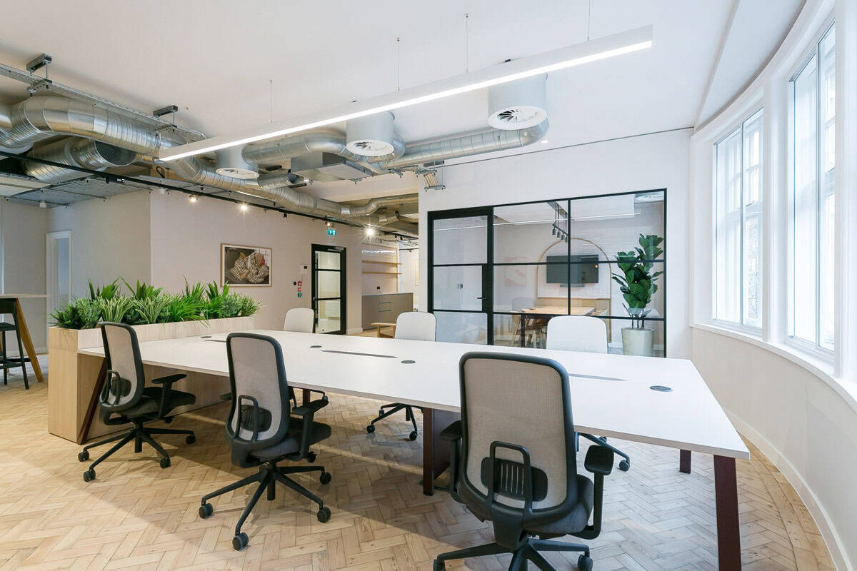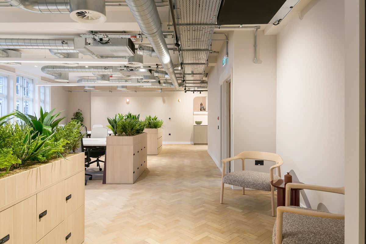 Internally, the team delivered a high-end Cat A+ finish. Moreover, a curated material palette enhanced the visual quality. In addition, refined detailing raised the overall standard. Meanwhile, improved acoustics supported a better working environment. Furthermore, bespoke furniture and integrated planting added character. As a result, the space feels cohesive and premium. Ultimately, fully integrated services support a future-ready workspace.